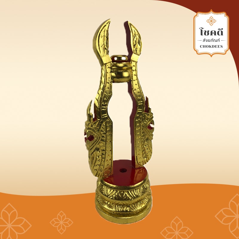 ขาตั้งตาลปัตร แกะลายพญานาค ปิดทอง ขาเสียบตาลปัตร